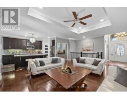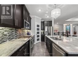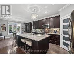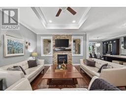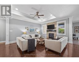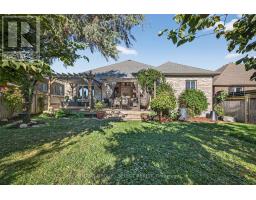 MINT FORMER MODEL! Gorgeous 3+1 bedroom open concept one floor home with a triple car garage and finished lower. Boasting over 3000 sqft finished - this home includes 9 ft ceilings thru-out the main floor with rich hardwood floors and quality tile in wet areas. Grand foyer to welcome guests and open to the large Great room with tray ceiling, pot lighting, gas fireplace and crown mouldings. Beautiful quality maple kitchen with crown moulding, decorative column, corner pantry cupboard, large island, vanity lighting, backsplash and granite counter tops. Stainless appliances including 5 burner gas stove. Large covered porch access off dinette area. Spacious main floor laundry with garage access. King size primary suite with large walk-in and luxury 3pc ensuite with jetted spa glass shower. 2 additional bedrooms (one being used for entertaining - and is very large) Transoms above doors on main. Main 4pc bath with granite tops. Lower level finished with 3 piece bath, wet bar & huge L shaped family room PLUS a bedroom and office attached. Exterior is brick and customed stone. Yard is fenced and has mature trees with extended decking for outdoor entertaining. Steps to beautiful nature trials. Close to 401 access and all amenities! This home is in move in condition! View today. (id:50886)