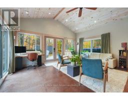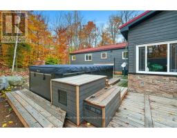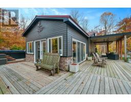 Welcome to your year-round home on beautiful Hooton Lake - a quiet, non-motorized lake perfect for peaceful living and time spent in nature. Set on 2.84 acres with 243 feet of shoreline this 3-bedroom, 2-bathroom property features a rare combination of privacy, comfort and lakeside charm. Built in 1990 and thoughtfully updated, the home features a chef-style kitchen with island ideal for entertaining and a sunken living room with a high efficiency wood burning fireplace. A cozy family/sunroom with propane fireplace, expansive windows and a walkout to the deck - creating an effortless indoor/outdoor area with covered area with infrared heaters, generous decking and a swim spa for year-round relaxation, exercise or just relax in the hot tub end of the spa. The landscaped grounds include your own private beach-perfect for morning swims, paddle boarding or soaking up the sun. A Generac generator adds peace of mind, while a detached garage & bunkie add plenty of space for toys, gear and guests. Ideal for family living or weekend escapes. Whether you're enjoying quiet mornings by the lake, hosting friends on the deck or unwinding in the swim spa this Hooton Lake home delivers comfort, nature and four-season enjoyment. Located in Seguin close to Parry Sound and all amenities. Home is calling, it's ready for you to settle in and start making memories. (id:50886)