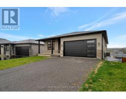 Welcome to this beautifully designed new bungalow, perfectly positioned in a quiet neighbourhood just minutes from Frankford. Thoughtfully crafted with modern finishes and open-concept living, this home offers 3 spacious bedrooms plus a den/office, ideal for today's lifestyles. The bright, contemporary kitchen features abundant cabinetry, quartz countertops, and a large island, flowing seamlessly into the dining area and great room-perfect for entertaining or family gatherings. Step out from the great room onto the expansive deck with a BBQ outlet, where you can enjoy panoramic views of the subdivision and the rolling hills leading toward the Trent-Severn Waterway. The primary suite provides a private retreat with a walk-in glass and ceramic shower in the ensuite, while the main bathroom is stylishly appointed for guests and family alike. The home show cases laminate flooring throughout and elegant hardwood stairs, with carpet only in the lower-level bedroom for added comfort. The fully finished lower level offers excellent in-law suite potential, featuring a spacious rec room with a modern tile-surround fireplace, a wet bar complete with a fridge opening, a fourth bedroom, and a 3-piece bathroom. The walkout basement leads to a beautiful interlocking patio, creating a comfortable and independent living space for extended family or guests. Bright and airy with abundance of windows, this home combines modern craftsmanship, comfort, and stunning natural surroundings-all within easy reach of Frankford's amenities, parks, and the Trent River. (id:50886)