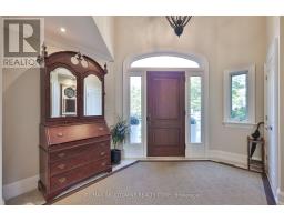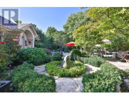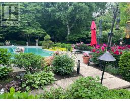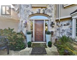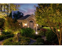 Set on a breathtaking 70'x209' private lot in Burlington's prestigious Roseland community, this stately stone and stucco home offers over 5,850 sq ft of finely curated living space across three levels. Showcasing timeless elegance and old-world craftsmanship, this home impresses with custom millwork, plaster crown mouldings, custom built-ins and rich hardwood, limestone and porcelain floors. Step into a grand foyer that leads to elegant formal dining and living rooms with a gas fireplace then discover the heart of the home: a chef's dream kitchen featuring a sprawling island, top-of-the-line appliances, walk-in pantry, sunlit breakfast area with a walk out to the stunning gardens. Adjoining the kitchen is the great room with a two-storey ceiling, gas fireplace and a wall of windows framing your own backyard paradise. The main level also features a home office, stylish powder room and custom mudroom with access to an oversized double garage with epoxy floors. Upstairs, unwind in your primary retreat with vaulted ceilings, sunlit walk-in closet and luxurious 4-piece spa-inspired ensuite with steam shower. A loft-style library with built-in bookcases overlooks the great room and three more spacious bedrooms include a private guest suite, a shared 4-piece bath and convenient upper-level laundry. The lower level features a home theatre room, hobby room, second laundry, fitness studio with beverage centre and 3-piece bath and storage. Outside, the resort-style backyard is an entertainer's dream featuring a 20'x40' saltwater gunite pool ('19), stucco pool house ('15) with kitchenette, change room and garden storage, a pergola-covered stone patio ('19) with gas fireplace, dramatic landscape lighting and tranquil stone water feature, surrounded by stunning, lush, mature gardens. Just steps to top schools, parks, downtown and the lake, this distinguished home with its meticulous attention to detail exudes warmth and comfort and will appeal to the most discerning buyer. (id:50886)
