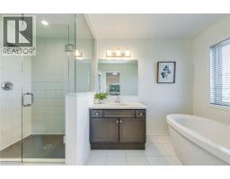 Welcome to 3429 Eternity Way, an energy-star certified freehold townhome in Oakville's desirable Glenorchy community backing onto breathtaking plains and woods. With bright, open spaces, this home is move-in ready for modern family living. Step inside to an inviting open-concept main floor featuring 9-foot ceilings, elegant hardwood floors, and large windows that flood the home with natural light. The spacious living room is ideal for relaxing or entertaining, while the adjacent dining area provides the perfect setting for family meals. The chef's kitchen impresses with granite countertops, stainless steel appliances, extended cabinetry, and a massive island, offering both function and style. Upgraded Hardwood stairs lead upstairs to the primary bedroom serving as a serene retreat complete with a walk-in closet with custom built-ins and a spa-inspired 4-piece ensuite featuring a freestanding tub, large glass-enclosed shower, and granite stone vanity. Two additional bedrooms offer bright windows and ample closet space, sharing a beautifully appointed 4-piece bathroom. The convenience of an upper-level laundry room adds everyday ease.The large unfinished basement gives you the opportunity to expand the living space with a versatile recreation room, an additional bedroom, and a modern 3-piece bathroom-perfect for guests, teens, or a home office. Outside, enjoy a private backyard upgraded with stone steps and a massive interlock patio, ideal for relaxing or entertaining in the warmer months. Enjoy complete privacy in your fenced yard backing onto clear fields. Private driveway is separated from the neighbours and can be expanded to accommodate two cars. Carpet Free + Professionally finished closets throughout. Proximity to top-rated schools (Dr. David Williams Public School) + New upcoming Catholic Elementary and High School, Woodlot and walking trail to a nearby pond, shopping, hospital, and major highways including the 407, QEW, and GO Transit. (id:50886)