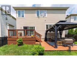 No carpet. Welcome to 343 Eckerson Avenue, a beautifully maintained, spacious family home in the heart of Stittsville. This 4-bedroom, 4-bathroom detached property is ideally located on a quiet, low-traffic street across from a peaceful wooded area, offering both privacy and tranquility. The main level features a bright and airy foyer, a formal living room, and a versatile denideal for a home office or study. The separate dining room is highlighted by a large window that fills the space with natural light.The open-concept kitchen is the hub of the home, stainless steel appliances including a gas stove and ample cabinetry. The adjacent family room offers a cozy atmosphere with a gas fireplace, pot lighting, and direct access to the backyard through an oversized patio door. Enjoy outdoor living on the wooden deck and gazebo in the fully fenced backyardperfect for relaxing or entertaining, especially when the surrounding trees are in full bloom. Upstairs, you'll find generously sized bedrooms and wide hallways that add to the open feel. The spacious primary suite includes a walk-in closet and a 4-piece ensuite with a soaker tub under a large corner window, and a separate shower. One of the secondary bedrooms features vaulted ceilings and its own walk-in closet with a window. The basement offers a full bathroom finish and excellent potential for additional living space, a home gym, or recreation area, along with plenty of room for storage. This home is conveniently located near top-rated schools, parks, and shopping, with easy access to the Recreation Complex, Stittsville Main Street, and local amenities. Dont miss your opportunity to own this spacious and well-appointed home in one of Stittsvilles most desirable neighbourhoods! (id:50886)
