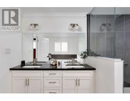 Discover luxury living in this Monarch-built executive home in Oakvilles prestigious Bronte Creek neighbourhood, just steps from trails, Colonel William Woods Park, & Bronte Creek Provincial Park ideal for hiking, biking, & family adventures. This exceptional Bronte Creek real estate gem sits on a re-landscaped lot with a stone & stucco façade, stone tile walkways, manicured gardens, soffit lighting, & a private backyard oasis featuring a saltwater pool, sheer descent waterfall, & extensive stone patio for outdoor entertaining. Inside, exceptional upgraded living space includes 4+1 bedrooms, 4.5 bathrooms, & a professionally finished basement (2020) with a recreation room, wet bar, glass-enclosed gym, a fifth bedroom, & a modern 3-piece bath. Elegant finishes, wide-plank hardwood floors, crown mouldings, designer tiles, custom cabinetry, custom blinds, California shutters, & stone countertops are complemented by 9-foot ceilings & expansive windows. The main level offers formal living & dining rooms, a custom kitchen with premium appliances, a dramatic two-storey family room with fireplace, a private office, a dream laundry room & chic powder room. Upstairs features 4 spacious bedrooms & 3 spa-like bathrooms, including a primary retreat with a 5-piece ensuite boasting a lavish soaker tub & separate glass shower. Recent upgrades include 2 updated upstairs bathrooms, new second level laminate floors & baseboards, 100 new pot lights, updated fire stones in the electric fireplace, integrated wall vents, designer feature wall in the dining room, fresh paint, new door hardware, & a Tesla charger added to the garage. Located minutes from top-rated schools, shopping, restaurants, Oakville Trafalgar Hospital, & major highways, this showpiece family home in Bronte Creek offers luxurious living in a prime Oakville location. (id:50886)