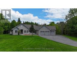 Escape to your own Private Oasis in this Luxurious Country Estate Property. Discover serenity and sophistication in this stunning 3+1 Bedroom Bungalow nestled on a breathtaking 6.855-acre property in the highly sought-after community of Dunrobin. This beautiful estate offers the perfect blend of natural beauty & modern luxury, steps away from the prestigious Eagle Creek Golf Course. As you approach the home via the 350-foot paved driveway, you'll be greeted by a spacious home, wrapped in stone, w/3-car garage, providing ample space for vehicles & storage. A new 50A plug located inside the garage provides ample power for your RV alongside the garage. The lush landscape is maintained by a 21-Zone Irrigation System. Step inside to find a meticulously renovated interior featuring new luxury Hardwood Flooring throughout the main level. The heart of the home boasts a recently upgraded Kitchen, complete w/stylish finishes and stainless appliances. The Living Room showcases vaulted ceilings and a striking Gas Fireplace that extends to the ceiling, creating a dramatic focal point and a touch of elegance.Retreat to the Primary Bedroom, where you'll find a built-in Electric Fireplace, a stunning ensuite bath w/glass shower, and a large walk-in closet.The fully finished basement is an entertainer's dream, featuring a brick surround gas fireplace, movie theatre, fourth bedroom, full bath, workout space, and access to both the garage & huge recreation area. French doors in the kitchen lead to a raised, stamped concrete patio, perfect for outdooring & relaxation. Follow the concrete pathway to the fire pit, where you can unwind and enjoy the peaceful sounds of nature. Surrounded by rich forest, this property offers unparalleled privacy and tranquility. Experience the best of both worlds with the convenience of nearby amenities(15 mins to Kanata) and the serenity of your own private woodland retreat. Don't miss this rare opportunity to own a piece of paradise in Dunrobin. (id:50886)