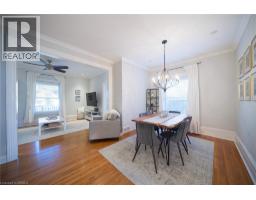 Welcome home to 35 Murray Street in Brantford. This 2-storey home offers 1,716 sqft of living space with 3 bedrooms, 2 bathrooms and a private fully fenced backyard. A well-kept exterior highlights the updated steps with raised flowerbeds and a covered front porch creating a warm first impression. Parking for two vehicles is available. A bright foyer welcomes you inside, featuring classic trim, crown moulding and a closet for everyday organization. The carpet-free main floor includes hardwood flooring that flows from the foyer through the living & dining rooms, accented by high ceilings, crown moulding, pot lights and large windows. The living room includes a ceiling fan, while the dining room offers an elegant setting for gatherings. The crown moulding & trim continue into the updated eat-in kitchen, featuring stone countertops, cabinetry complemented by a subway tile backsplash, and a center island with butcher block surface, storage & seating. This bright, functional space includes a new gas stove (2025) and sliding doors with a walkout to the rear yard. The main floor is complete with a laundry room and a 3-piece bathroom with an updated glass-enclosed shower (2023). The hardwood flooring continues upstairs, where you’ll find three bedrooms, including a primary with walk-in closet. A 4-piece bathroom with a tub/shower combo completes the upper level. The basement offers unfinished space for storage or future development. The fully fenced backyard includes landscaped green space and a new tiered deck (2025) with plenty of room to relax or entertain. A garage/workshop with stained glass doors adds both charm and functionality. Additional updates include an owned water softener (2022), main water line replacement, vinyl windows (2010), and washer/dryer (2020). Located within walking distance of schools, parks, grocery stores, bus routes, and everyday amenities, this home offers convenience and community in one of Brantford’s established neighbourhoods. (id:50886)