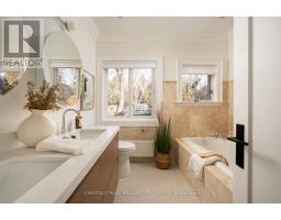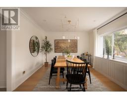 On the most coveted stretch of Weybourne Crescent, stands this Georgian home that feels lifted straight from the pages of Architectural Digest. Its presence is unmistakable: a manicured front garden frames the warm brick façade, enriched by symmetry, a detailed portico, a solid wood centre-hall door with glass inlays, and charming dormers that give the home its elegant, inviting personality. Inside, the story unfolds with a foyer finished in heated natural stone, a panelled oak-wood closet, and a skylight that fills the space with natural light. To the right, the formal dining room glows beneath a designer chandelier and flows seamlessly into the sun-filled kitchen with brand new panelled Fridge/Freezer, Dishwasher and built in oven, where refined finishes and a window-wrapped breakfast nook overlook the private backyard. Across the centre hall, the living room offers timeless charm with a gas fireplace, opening into a designer family room featuring a custom media wall, arched built-in, a dramatic skylight, and floor-to-ceiling windows framing the backyard oasis. Engineered white oak floors, pot lights, and integrated speakers elevate the entire main level. The second floor hosts a serene primary suite with a 5PC ensuite and walk-in closet, along with 2 additional bedrooms and a laundry closet. The third floor has two bright bedrooms with built-ins, adding rare architectural character. The lower level extends the home with two versatile rooms, a modern bath, a large laundry room, and a spotless utility space. Outdoor living shines with landscape lighting, smart irrigation, outdoor speakers, and rare parking for up to 9 cars, including a 2-car detached garage behind a remote-controlled gate. Steps to parks, the Lawrence Park Tennis Club, and close to Granite Club & Rosedale Golf Club, an easy walk to Yonge Street, Subway Station, and top schools, this home offers a lifestyle of charm, character, and modern family luxury on one of Toronto's most admired streets. (id:50886)