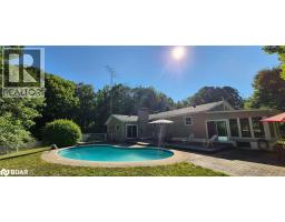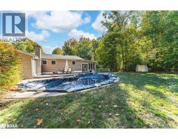 34-ACRE COUNTRY RETREAT WITH AN INGROUND POOL, IN-LAW POTENTIAL & LIMITLESS POSSIBILITIES! Set on an incredible 34-acre property surrounded by towering trees and peaceful natural beauty, this sprawling bungalow offers true country living with endless room to roam, complete with manicured trails perfect for walking, biking, or snowmobiling. Embrace a lifestyle defined by nature and tranquillity, just minutes from Georgian Bay’s beautiful beaches, local parks, and a grocery store, with Wasaga Beach only 15 minutes down the road. The property makes an unforgettable first impression with a circular driveway offering parking for more than 20 vehicles, a detached double garage, multiple sheds, and plenty of space for a future shop. The expansive backyard features an inground pool surrounded by a generous patio, perfect for outdoor entertaining or quiet relaxation. Over 3,200 finished square feet, including more than 1,850 on the main level, provide an abundance of living space for families, multi-generational living, or those dreaming of a country retreat. The large kitchen features white cabinetry, built-in appliances, a centre island, and an open connection to the formal dining room, making it ideal for hosting gatherings. The bright living room overlooks the treed front yard, while the family room features a cozy wood fireplace and a walkout to the backyard. A separate sun-filled hot tub room with a fireplace offers an additional sliding door walkout leading to the pool and patio area. The finished basement extends the possibilities with in-law potential, complete with a second kitchen, living room, den, rec room, two bedrooms, and a full bathroom. Whether you envision a peaceful family haven, a multi-generational escape, or simply a property with room to grow, this exceptional #HomeToStay is filled with opportunity and ready for your personal touch to make it truly yours! (id:50886)