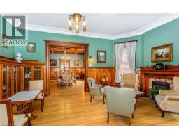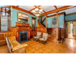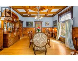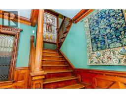 The Nortonia Mansion | A Legacy Estate in Hamilton’s Prestigious Durand Enclave | Step into the grandeur of The Nortonia — a Queen Anne English Mansion nestled in Hamilton’s exclusive Durand neighbourhood. Celebrated in The Globe and Mail as a highlight in “An Exhibit of Hamilton’s Mansions,” this stately residence is a masterwork of turn-of-the-century craftsmanship. A true Downton Abbey lifestyle awaits, with a regal façade and a succession of exquisitely panelled rooms accessed via 9-ft French doors. Soaring 10.5-ft ceilings crown the principal spaces, where original wood detailing remains intact. The formal dining room boasts a shimmering crystal chandelier, heritage stained glass, and a balcony walkout. Rich wood panels and antique swinging doors lead to a granite-clad chef’s kitchen, beautifully blending old-world charm with modern function. The Petite Salon’s coffered ceiling, exposed wood beams, and jewel-toned stained glass lead into the luminous Conservatory Atrium — perfect for morning tea or evening entertaining. A grand staircase showcases an 8-ft stained glass tribute to Lady Nortonia, a centrepiece of this heirloom estate. The second level continues with 10.5-ft ceilings, four generous bedrooms, spa-inspired 4-pc and 5-pc baths, and large laundry room. A separate entrance accesses a legal 2-bedroom apartment — ideal for guests, multi-generational living, or income. The original Carriage House includes a 2-car garage and upper loft studio with separate entry — a creative space, rental, or private retreat. This rare offering combines heritage, flexibility, and income potential in a historically rich neighbourhood. Estates of this calibre rarely come to market. The Nortonia Mansion is more than a home — it’s a family legacy of enduring beauty and exceptional craftsmanship. (id:50886)