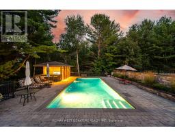 Beautiful Executive Home In sought After King Location On a Majestic 8+ acre private Treed Lot With In Ground Pool at End Of Cul-De-Sac! Superb Traditional Floor Plan With Formal Living/ Dining Rms, Large Family Room With Wood Burning Fireplace , Hardwood Flooring And Picture Views Of The property. Eat-In Kitchen with Granite tops, Tops of line appliances, walk-in Pantry And W/O to Pool/ Hot Tub/Patio! Spacious Primary Bedroom Features a Gas F/P, Bathroom Ensuite, Walk-In Closet + W/O to Balcony! Lower Level Is Fully Finished With Wet Bar, Gas Fireplace , Games Room, Rec Room, + W/O to Yard. Backyard Is a Private Oasis, Perfect For Family Gatherings and Entertaining With a stunning Gunite Pool, Cabana with Outdoor Kitchen/Bar 3pc Bath + Lounge Area! Long Winding Drive, Covered Front Porch and Mature Landscaping/Hardscaping Complete This One of a Kind Setting Must be Seen! (id:50886)