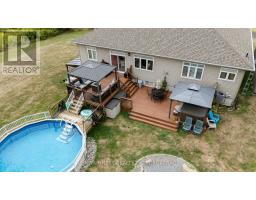 Its a rare find, a custom quality built 1765 sq ft bungalow on 3 acres only 10 minutes from the 401. Winding trails meander through the property shaded by mature trees that offer a place to stroll with your morning coffee. A pond at the back of the property is a home for diverse nature that will never fail to provide a concert of the summer evening songs and stories. When the snow falls, these same ATV trails offer a mini adventure scouting out animal tracks. The living space inside the front door is open from the front to the back with new flooring. The rear decks are designed as a meeting place for friends to enjoy a get together while the kids play in the heated above ground pool. And when everyone has gone home, there is still a cozy hot tub for stargazing nights. The back yard also holds rock gardens, a serene place to reflect under the shade of a maple, and a vibrant garden that bursts with flowers and fresh produce. The full height and finished basement extends the home's versatility with a granny suite and a convenient walkout to a covered patio and side yard. Send the kids exploring and they will discover an outdoor tree gym and farther back their very own tree house, a place of endless adventures without a screen in front of them; never mind the paved driveway for scooters, bikes, or skateboards. Just a few of the extras include a partially insulated shed, a loft in the fully insulated and heated garage, a Cummins generator, 2 firepits, 2 gazebos, new vinyl flooring on the main level (over maple floors), new kitchen appliances, granite counters, and a home security system. Drilled well @ 10 gpm (id:50886)