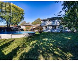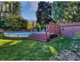 Desired Rolling Acres area. Walk to your choice of schools, park, minutes to the QEW for the commuter and all amenities. Solid, spotless, 3+1 bedroom brick family home with attached double car garage and paved, double private driveway. Fully fenced, large backyard with covered concrete patio/BBQ area overlooking the sunken above ground pool and deck. Garden shed, landscaped. Covered tiled front porch entryway to foyer. Great floor plan with oversized, bright replacement windows throughout. Inviting hardwood floored living room with gas fireplace, large, formal dining room. Open concept dinette, kitchen with walkout to backyard. Redone 3 piece bathroom with spacious walk-in shower plus a newer 4 piece bathroom upstairs. 3 bedrooms and a walk-in pantry. Comfortable, cozy rec room, high ceilings and pot lights. 4th bedroom, laundry room, storage room, 8 year new FAG furnace and CA unit. 200-amp breakers having enough power for that backyard hot tub you've always dreamed of. Start or move your family into a neighbourhood where you can leave your doors unlocked! This is it! (id:50886)
