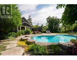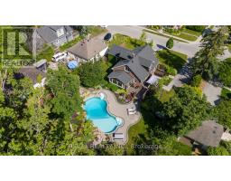 Set on one of Barries most prestigious streets, this exceptional 3-bedroom, 2-bath home combines timeless character with modern comfort offering a rare opportunity to own nearly half an acre in the heart of the city. Framed by towering trees and located just minutes from the lake, top-rated schools, and vibrant downtown amenities, this all-brick residence is a true standout. Inside, youll find engineered light oak flooring, pot lights throughout, and a neutral, move-in-ready palette that highlights the homes historic charm. The spacious kitchen features solid oak cabinetry, quartz countertops, a bar sink, tile backsplash, and expansive windows that overlook the showstopping backyard. Upstairs, two bright bedrooms include one with custom closets and built-ins, while the third bedroom and beautifully updated bathrooms (3-piece on the main, 4- piece upstairs) offer flexibility for family living or guest space. A finished basement provides a dedicated laundry area, additional storage and a recreation space perfect for entertaining/childrens playroom. What truly sets this home apart is its luxurious, professionally landscaped lot measuring 87 feet wide by 236 feet deep. Step outside into your own private resort: interlock and flagstone pathways wind through lush gardens, with armour stone features adding dramatic elegance. At the heart of this private oasis lies a stunning kidney-shaped in-ground pool, artfully set into its natural stone surroundings and complemented by a charming pool houseall fully fenced and surrounded by mature greenery that ensures year-round privacy and serenity. Additional features include two driveways, a fully fenced yard, and unbeatable access to parks, waterfront trails, cafes, and shopsall within walking distance. (id:50886)