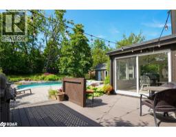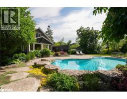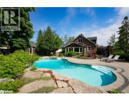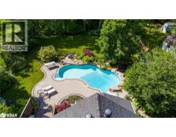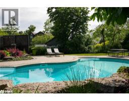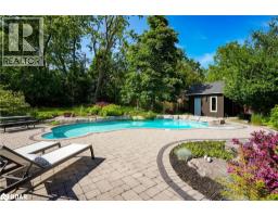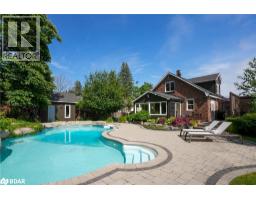 Set on one of Barrie’s most prestigious streets, this exceptional 3-bedroom, 2-bath home combines timeless character with modern comfort— offering a rare opportunity to own nearly half an acre in the heart of the city. Framed by towering trees and located just minutes from the lake, top-rated schools, and vibrant downtown amenities, this all-brick residence is a true standout. Inside, you’ll find engineered light oak flooring, pot lights throughout, and a neutral, move-in-ready palette that highlights the home’s historic charm. The spacious kitchen features solid oak cabinetry, quartz countertops, a bar sink, tile backsplash, and expansive windows that overlook the showstopping backyard. Upstairs, two bright bedrooms include one with custom closets and built-ins, while the third bedroom and beautifully updated bathrooms (3-piece on the main, 4- piece upstairs) offer flexibility for family living or guest space. A finished basement provides a dedicated laundry area, additional storage and a recreation space perfect for entertaining/childrens playroom. What truly sets this home apart is its luxurious, professionally landscaped lot— measuring 87 feet wide by 236 feet deep. Step outside into your own private resort: interlock and flagstone pathways wind through lush gardens, with armour stone features adding dramatic elegance. At the heart of this private oasis lies a stunning kidney-shaped in-ground pool, artfully set into its natural stone surroundings and complemented by a charming pool house—all fully fenced and surrounded by mature greenery that ensures year-round privacy and serenity. Additional features include two driveways, a fully fenced yard, and unbeatable access to parks, waterfront trails, cafes, and shops—all within walking distance. (id:50886)