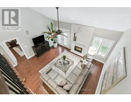 $400 MonthlyWelcome to The Bungalows of Ancaster South - an exclusive enclave of executive homes tucked away in one of Ancasters most desirable locations. Built by Starward Homes in '12, this immaculate end-unit bungaloft offers 1993 sq ft (above grade), 2 bdrms, 2.5 baths, & the rare advantage of no immediate rear neighbours. A stone entrance & private drive off the main road lead into this meticulously maintained community. The homes striking facade of red brick, stone, & stucco is complemented by a 2 car grg w/ inside entry & 2 add surface parking spots. Step inside through the elegant front door w/ a transom window into a foyer that sets the tone for the rest of the home. The form din rm w/ crown moulding offers the perfect space for entertaining. The open-concept main lvl feat a bright kitch w/ timeless white cabinetry (including bonus dark pantry cabinetry), granite countertops, S/S app, undermount lighting, & breakfast bar seating for 3+. A dinette sits off to the side, framed by circular columns. The liv rm impresses w/ vaulted ceil, a gas FP w/ a cast stone surround & associated mantel, and French drs leading to an oversized raised deck - complete w/ Sunbrella awning for added shade. The main lvl primary bdrm incl crown moulding, a 4-pc spa-like ensuite w/ corner glass shower, soaker tub, granite vanity, & walk-in closet. The main-lvl laund & powder rm add convenience. Upstairs, the loft space overlooks the liv rm & is perfect as a home office, den, or other multi-purpose space. A lrg 2nd bdrm w/ a bonus reading nook & a 3-pc bath completes the upper lvl. Add feat: hrdwd flrs, Cali shutters, rounded drywall corners, elegant lighting, fresh paint, c-vac, updated furn & c-air (21), & an unspoiled bsmt w/ 2 oversized windows & a bath rough-in. Enjoy turn-key living w/ fees incl building insur, ext maint, parking, & access to common elements. Min to parks, shopping, restaurants, golf, highways, & top schools, this home offers upscale living w/ unbeatable amen. (id:50886)