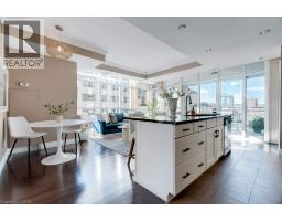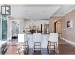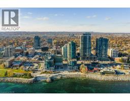 Welcome to the highly sought-after 360 Pearl—a premier building in the heart of downtown Burlington with gorgeous lake and escarpment views in every direction. This beautifully updated 2-bed, 2-bath suite offers an open-concept layout, floor-to-ceiling windows, and 9 ft ceilings, creating a bright and sophisticated living space. The kitchen impresses with custom cabinetry, pot drawers and slide-out shelving, stainless steel appliances which include a gas stove, a generous island for entertaining, and granite countertops. The Great Room is wrapped in windows, showcasing lake views and providing a seamless walkout to your expansive wrap-around balcony. The primary suite offers its own balcony access, a spacious walk-in closet with built-in organizers, and a spa-inspired ensuite with a large glass shower and extended vanity. The second bedroom features stunning lake views and a custom Murphy bed—perfect for easily transitioning between a home office and guest space. A stylish 4-piece bathroom with granite finishes and convenient in-suite laundry complete the interior. This unit truly shines for those who love to entertain. The building offers exceptional amenities including a rooftop terrace with BBQs, state-of-the-art gym with a steam room, party room, games room, movie theatre, and 24-hour concierge/security. Walk to Burlington’s best restaurants, boutique shops, Spencer Smith Park, and waterfront events. Includes 1 parking space (Level B #4) and 1 locker (Level B #57). (id:50886)