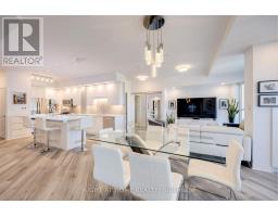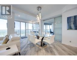 A Truly One-of-a-Kind Residence at 60 Absolute Avenue - no other floor plan like it in the entire building. Experience modern luxury like no other. This fully renovated, 1170 sq. ft. contemporary suite + 225 sq. ft. wrap-around balcony, is unlike any other unit in the building offering a distinctive design and unmatched style. Enjoy panoramic, unobstructed views of the CN Tower and Lake Ontario right from your living space, or step onto one of the largest terraces at 60 Absolute, where southeast exposure brings you sunrises and breathtaking views every day. Located in the vibrant heart of downtown Mississauga, you're just steps from fine dining, Starbucks, Square One, Celebration Square, and the upcoming LRT with quick access to downtown Toronto. Designed for entertainers and modern living, the custom kitchen stands apart with over 30 sleek high-gloss cabinets, a custom tinted glass backsplash, and a spectacular 8-foot island with a textured glass LED-lit countertop, a true showpiece. Floor-to-ceiling windows flood every room with natural light and provide walkouts to the expansive terrace, blending indoor and outdoor living seamlessly. This residence also comes with two premium parking spots and access to world-class amenities including a state-of-the-art fitness centre, indoor and outdoor pools, basketball and squash courts, and 24-hour concierge service. This is not just another condo, it's a rare offering that combines bold design, modern finishes, and extraordinary outdoor space in Mississauga's most iconic address. Check out the building website at www.60absolute.ca (id:50886)