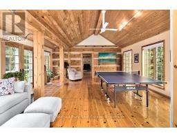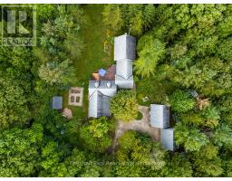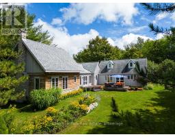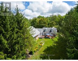 Welcome to this private and versatile 10-acre property in the heart of Grey Highlands. Tucked at the end of a quiet dead-end road it offers privacy with whimsical gardens, open spaces, expansive forest, walking and biking trails and several multi-purpose buildings. The main residence spans approximately 3,500 square feet and features 3 bedrooms and 3 bathrooms. The kitchen encompasses the dining room and a cozy sitting area with wood stove. With sub zero fridge, gas stove and maple cabinetry it welcomes the chef in the family. Walk out from the dining room to the deck surrounded by wildflowers and mature trees. The guest bedroom has a renovated 3pc ensuite bath and built ins for storage. A stunning 2005 log addition adds warmth and character with a Rumford fireplace with limestone hearth, spacious primary bedroom with ensuite, walk-in closet. Pine floors run throughout, and a whitewashed loft provides additional sleeping space for the family, and has easy access to a 3pc bath off the kitchen. The entire house is sunlit filled with several rooms for gathering friends and family for a meal, or lively games. The lower level is unfinished, and includes a sauna, workshop, dark room, and plenty of storage. Plenty of room and unlimited potential. Steps away, the fully equipped guest house includes a kitchen, bathroom, and bedroom--ideal for guests or rental use. A handcrafted stone casita with a sleeping loft and wood-burning fireplace sits tucked in the woods, perfect for peaceful getaways or kids playhouse. The land features raised vegetable beds, a potting shed, wildflowers, apple trees. The setting is truly special. Enjoy trails throughout the forested acreage, ideal for hiking and mountain biking and snowshoeing. An open area lends itself to fun and games and it is adjacent to the tobogganing hill. It is less than 2 hours from the GTA, and 10 minutes to Beaver Valley Ski Club, making this a perfect weekend retreat or seasonal base for nature lovers and ski families. (id:50886)
