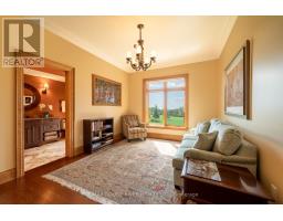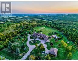 The Finest Country Estate in Northumberland County. Commanding 24 acres of rolling countryside with sweeping 360-degree views, this estate offers a rare combination of architectural mastery and natural beauty, just minutes north of Cobourg. Built with uncompromising craftsmanship, the 11,000 sq. ft. residence (7,500 sq. ft. above grade) blends timeless elegance with modern refinement. From the moment you arrive, the landscape sets the stage with meticulously groomed lawns, orchards, and stone installations by celebrated artisan John Shaw-Rimmington that create a sculpted canvas for outdoor living. At its heart, a resort-style pool framed by expansive stone terraces invites both grand entertaining and quiet retreat, while a private trail system winds through forested grounds to a hilltop lookout with panoramic views of Lake Ontario. Indoors, the residence impresses with a soaring great room 16-foot ceilings, marble columns, and a dramatic fireplace balanced by intimate spaces for everyday living. A Downsview-designed chefs kitchen, butlers pantry, and family room elevate both function and comfort. Seven bedrooms and six baths include a private 2-bedroom suite with it's own garage, while the primary retreat offers a dressing room, spa-inspired ensuite with heated floors, and sauna. Geothermal heating/cooling, an attached 3 car heated garage, a detached 2 car garage/shop and curated designer finishes complete this one-of-a-kind sanctuary. A true estate where architecture, landscape, and lifestyle converge at the highest level. (id:50886)
