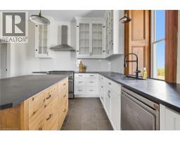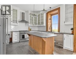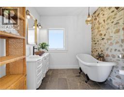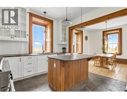 Step back in time and experience the magic of this 1800s fieldstone century home—where history and modern craftsmanship blend into something truly extraordinary. Lovingly restored from the studs up, every detail of this home has been carefully reimagined to honour its past while embracing the comforts of today. The heart of the home is its sun-drenched main floor, where 12-inch pine flooring, oversized baseboards, and deep windowsills frame the charm of each room. The kitchen is as functional as it is enchanting, featuring slate countertops, repurposed sunroom windows transformed into cabinetry, a six-burner gas oven, and an industrial dishwasher designed for effortless entertaining. A clawfoot tub, copper sink, and exposed stone wall bring timeless character to the main-floor bathroom, while the formal dining room, elegant staircase, living room and a main-level bedroom complete this inviting space. Upstairs, four generous bedrooms unfold, along with a three-piece bath in one of the bedrooms for convenience, another three-piece bath plus laundry extend into the addition of the home, and a bonus skylit retreat—perfect as an office, studio, or reading nook. The attic and dual basements offer endless potential to add finish space to the home, with one basement boasting a walkout to the yard. Outside, the story continues across just over an acre of land. A wraparound porch offers sweeping views of the surrounding cornfields, where the colours of every season paint the perfect backdrop. A charming greenhouse waits at the back, ready for new life to flourish. A rare blend of history, heart, and possibility—this one-of-a-kind century home is ready for its next chapter. (id:50886)