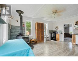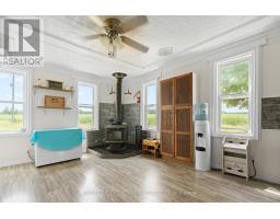 Charming Country Starter Home on 1.27 Acres - Easy Commute to Ottawa, Cornwall & Brockville! Welcome to your peaceful retreat in the country! This charming 2-storey home sits on a unique triangular lot bordered by the Allison Drain and surrounded by farmland, offering a private, scenic setting just 10 minutes from Chesterville, 15 minutes from Morrisburg, and only 5 minutes to the local golf course. Enjoy your morning coffee on the cozy front porch as the sun rises over the open countryside. Step inside to a spacious kitchen featuring wood cabinetry, a wood stove, and beautiful original tin ceilings. There's ample space to create an eat-in area, or take your meals in the character-filled dining room. The large living room also boasts tin ceilings and is perfect for relaxing or entertaining. A striking original wood staircase leads to the upper level, where you'll find a flexible open area ideal for a home office or reading nookplus a convenient 3-piece bathroom with laundry. The primary bedroom includes a secret second staircase, adding a touch of fun and nostalgia, while the second bedroom is located just off the office space. If you're seeking an affordable country home with character and room to make it your own, this is your opportunity. Book a showing and experience the peace and potential this home has to offer! (id:50886)