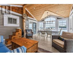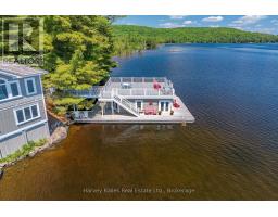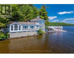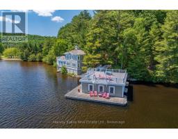 This extraordinary property spans 6.85 acres, featuring an impressive 573 feet of pristine, south-facing shoreline, offering a singular opportunity to experience waterfront living like never before. Ideally situated just feet from the water's edge, this beach house cottage is a true lakeside haven. Designed to maximize lake views from every angle, the interior features a modern kitchen, two living room spaces, and a large enclosed Muskoka room-perfect for gatherings, relaxation, or simply taking in the beauty of the surroundings. The property comes turn-key, with most furnishings included, allowing for an effortless transition to your new lakefront lifestyle. One of the standout features is its stunning primary suite, occupying the entire second level. This sanctuary features a 3-piece ensuite bathroom, a private deck, and breathtaking long lake views. Two guest bedrooms on the main floor offer bright, comfortable accommodations, ensuring that family and friends can fully enjoy their stay. Just steps away, the two-slip boathouse awaits, complete with a substantial composite sun deck ideal for entertaining, sunbathing, or simply enjoying the incredible views. On the opposite side of the cottage, a perfect beach area and a flat grassy space provide ample room for swimming, games, and outdoor fun, ensuring enjoyment for all ages with a gentle sandy entry to the lake. Lake of Bays, one of the largest lakes in the region, offers a vast shoreline waiting to be explored. With convenient access to boat launches and marina services, every day can be an adventure. Properties like this, with unique proximity to the water, expansive land, and comprehensive features, are few and far between. (id:50886)