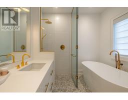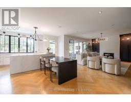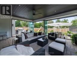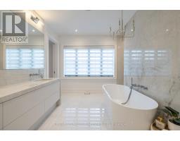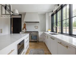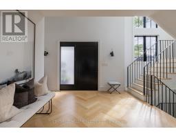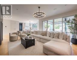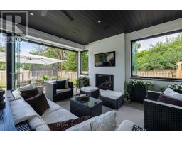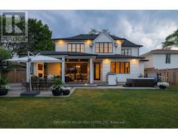 Situated on a premium 75' x 150' lot in the heart of West Oakville, this custom-built residence offers 3,625 square feet of thoughtfully curated living space. Completed in 2020 by Scott Ryan Design Build, the home showcases timeless architectural design, superior craftsmanship, and a floor plan tailored for modern family life. The main floor impresses from the moment you step inside. Herringbone-patterned engineered hardwood floors, soaring ceiling heights, and custom millwork by Misani Custom Design create a warm yet elegant backdrop. A dedicated office at the front of the home provides a quiet workspace, while the formal dining room with adjacent servery is perfect for entertaining. The heart of the home is the expansive kitchen where custom cabinetry, premium appliances, and a large island flow seamlessly into the great room. A thoughtfully designed mudroom with built-ins and side entry adds everyday functionality. Upstairs, the primary suite is a private retreat featuring a spacious, custom-designed walk-in closet and a luxurious ensuite with double vanity, freestanding soaker tub, and oversized shower. The two additional bedrooms include private ensuites and custom built-ins, offering privacy and comfort for family and guests alike. A fully outfitted laundry room finishes off this level. The fully finished lower level offers nearly 1,900 square feet of additional space with radiant in-floor heating and polished concrete floors. A large recreation area, fourth bedroom, full bathroom with steam shower, second laundry and ample storage make this level both versatile and functional. Step outside to a backyard oasis designed for year-round enjoyment. A covered rear porch with glass enclosure acts as a true four-season extension of the home, while the built-in BBQ, hot tub, and landscaped grounds create an idyllic setting for outdoor entertaining. An exceptional offering in West Oakville, this home delivers style, substance, and space in equal measure. (id:50886)