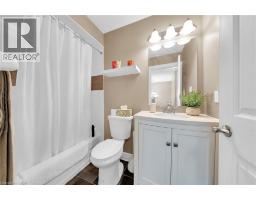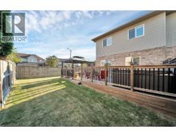 Introducing 37 Meadow Wood Crescent! This bright & spacious freehold townhome offers over 2,000 sq. ft. of living space. Step into the inviting foyer featuring a large hall closet, convenient powder room, and direct garage access. The open-concept main level presents California shutters, a stylish kitchen with granite countertops, stainless steel appliances, double sink with breakfast bar, and a bonus pantry. The dining area walks out to the backyard, while the living room showcases hardwood floors, a decorative stone feature wall with a modern fireplace for cozy winter evenings. The wide staircase leads to a stunning primary suite with gas fireplace, a roomy walk-in closet and a luxurious 5-piece ensuite. Two additional bedrooms, each with hardwood floors and California shutters, share the beautifully updated 4-piece bathroom. The finished lower level adds even more living space with a generous-sized and versatile rec room, laundry area, and separate storage space. Outside, enjoy a fully fenced backyard featuring a newer two-tier deck (’19), hot tub (’19), gazebo with curtains, and a solid shed with concrete floor, hydro, and shelving. A double-wide driveway and attached garage provide parking for up to four vehicles. Ideally located in a family-friendly neighbourhood, this home is close to parks, playgrounds, schools, Valley Park Community Centre, shopping, the Bruce Trail, public transit, and offers quick highway access. Furnace & C/A (’24), roof (’18), hardwood (’19), 5 pc ensuite (’19), +more. All appliances and 2 fireplaces included. With modern updates, great features and an excellent location this one checks all the boxes. (id:50886)
