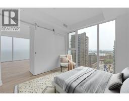 Welcome to your new home! This is a fantastic leasing opportunity in the heart of downtown Burlington, featuring breathtaking panoramic waterfront views. This newer executive condo boasts floor-to-ceiling glass windows that flood the space with natural light. The unit includes 2 bedrooms and 2 bathrooms, offering an open-concept main area with an oversized island and integrated family area. The primary bedroom features a luxurious 4-piece ensuite. Located just minutes from trendy restaurants, shops, local bars, and Spencer Smith Park, this condo offers the perfect blend of urban living and natural beauty. The unit is partially furnished with a double size bed, two side tables, a desk with two chairs, a coffee table and plates, glasses cutlery, pots and pans. Option to have these items removed or to remain with the rental. Don’t miss this exceptional opportunity to live in one of Burlington’s most sought-after locations! (id:50886)