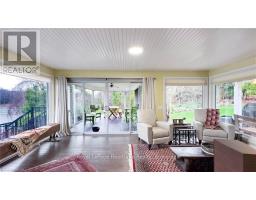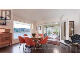Surround yourself with serene nature and unparalleled views of the beautiful Maitland River. This private, unassuming riverfront property offers a unique blend of history, the Maitland River, and modern comfort. Located in the village of Benmiller, just 10 minutes to Goderich - with incredible sunsets and 3 beaches! Spanning two parcels, this property includes over 7 acres of bushland along the Maitland Trail, and bordering the Falls Reserve Conservation Area, and a acre parcel including the home, spring fed pond and professionally landscaped grounds. The G2G trail is close by, offering cycling and hiking. Whether you're hiking, fishing, kayaking, cross-country skiing, or strolling to the nearby Benmiller Inn, this location offers endless outdoor adventures. The home features: 4 bedrooms, 4 baths, including a primary suite with a walk-in closet, ensuite, and stunning river views. The kitchen offers modern appliances, Caesarstone counters, and a walk in pantry. Hardwood ash floors grace the main living area and Birds Eye Maple floors in the bedrooms. The open living space offers a cozy Valor fireplace and you'll never tire of the views from the expansive windows. The screened in porch overlooks the gardens and river. Additional highlights include an eco-friendly heat pump and diamond steel roof. Heat pump offers heating and cooling. There is an attached double garage plus a detached, insulated double garage with wood stove making an ideal heated workshop. Originally built in 1963 by renowned artist Jack McLaren, this home reflects the spirit of creativity and tranquility. McLaren chose this idyllic location for his residence a testament to its unique allure. This is a truly unique purchase opportunity, hidden along the Maitland River shoreline. (id:50886)