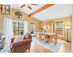 Welcome to your Calabogie home! Beautifully set on a treed lot with stunning views of Calabogie Lake, this home offers the perfect escape in a region known for skiing, hiking trails, and watersports. Just minutes to Calabogie Peaks and several golf courses, the location is ideal for year-round outdoor living. The open-concept living room features vaulted ceilings and patio doors that lead to a spacious wraparound deck - the perfect place to relax, entertain, and take in the natural beauty. The garden and perennials create a showstopping landscape in the summer months. The kitchen includes a cozy eating area, and the main floor large primary bedroom features walk-in double closets. An additional bedroom and an office/den complete the main level. The fully finished lower level offers a generous rec/living room, TV area, woodstove, and a third bedroom or office space, extra storage, laundry, workshop and access to the attached garage. Warm neutrals throughout. Propane heating. (id:50886)