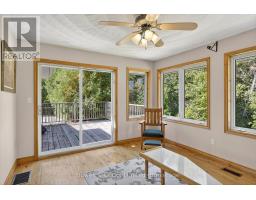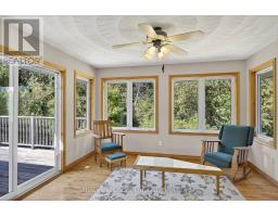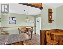 Welcome to this charming country home that has been lovingly cared for by one family and is ready for its next chapter. Sitting on a private 1.37-acre lot surrounded by mature trees, this property blends peaceful rural living with the convenience of being less than 10 minutes to the City of Peterborough. Inside, the home offers a functional layout with plenty of character and potential. The main floor features a spacious eat-in kitchen large enough for a full-sized dining table. From here, French pocket doors lead you into a bright 4-season sunroom the perfect spot to enjoy your morning coffee while taking in backyard views. The formal living room showcases a classic wood-burning fireplace and an abundance of windows that fill the space with natural light. Three generously sized bedrooms provide flexible living, with one ideal as a home office, plus the bonus of an oversized primary suite. A 4-piece bathroom serves the main level, while the lower level offers a second 3-piece bath. The finished basement is full of rustic charm with a rec room complete with a woodstove, a bar area with fridge, and walk-out access to a concrete patio and backyard. Additional highlights include a workshop that connects to the attached two-car garage, a separate driveway for easy access, and plenty of woodworking details throughout the home and property. Outside, you'll find a lean-to wood storage area, an original log outbuilding for extra storage, and plenty of space to garden, play, or simply relax. This home offers an abundance of space, charm, and potential to make it your own. With its peaceful setting, multiple living spaces, and prime location just minutes from Peterborough, 374 County Road 4 is the perfect place to create lasting memories. (id:50886)