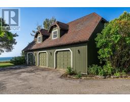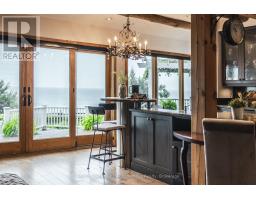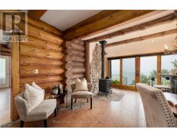 Nestled on the picturesque shores of Lake Ontario, this stunning log cabin combines rustic elegance with luxurious comfort, offering over 3,500 sq.ft. of thoughtfully designed living space. With three spacious bedrooms, plus the versatility of a main level office, this home is tailored for both family living and entertaining guests in style. Inspired Living Spaces and Large principal rooms invite effortless gatherings, anchored by a striking stone fireplace and three walkouts leading to the serene lakeside setting. The entry foyer boasts a soaring ceiling, decorated with stained glass and a large rustic chandelier. An exceptional orangery flooded with natural light from overhead skylights also features both a walkout, and floor to ceiling windows creating a perfect year-round retreat. At the heart of the home lies a beautifully designed, open-concept kitchen, an inspired space where culinary artistry meets elevated living. Outfitted with premier built-in appliances and a professional-grade range, it offers the perfect canvas for both everyday cooking and sophisticated entertaining. An additional space could be appointed as a butler pantry or turned into an expansive prep area to further enhance its functionality, This open concept kitchen and gathering area enhances with sweeping views of the majestic Lake Ontario bluffs creating a breathtaking backdrop for every gathering. Ascending to the third level in this home via a spiral staircase, a luminous loft awaits, bathed in the gentle glow of skylight windows. This serene sanctuary invites quiet moments of reflection, or a creative inspirational private nook for a studio, a cherished library, or a cozy retreat. Here, beneath the vast sky, one can lose themselves in the soft dance of natural light, and find solace in solitude providing a space where time slows down and the soul feels truly free. (id:50886)