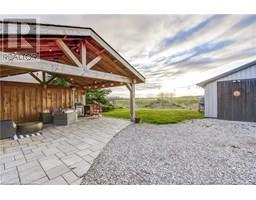 Welcome home! Renovated Century Farmhouse, where character and charm meets modern living! Nestled in a quiet and desirable area on 0.92AC in rural outskirts of Hagersville surrounded by farmland and mature treed setting. Step inside and be greeted by the warmth of the abundance of natural light and desirable open concept floor plan. With approx. 1800sqft of living space there's ample room for everyone to unwind, entertain, and spend time together. The heart of the home lies in the spacious kitchen complete with stone counter tops, a large island, and stainless-steel appliances. Main floor also features a renovated 3pc bathroom, spacious living room, dining space and convenient laundry/mud room. Second levels offers 3 bedrooms and a renovated 4pc bathroom Once you walk out to the expansive yard, you’ll not only enjoy the peace and tranquility but great entertainment amenities such as fire pit, lovely large gazebo perfect to relax and sip your morning coffee or gather in the evening to watch some outdoor movies. This property also features a detached garage, parking for up to 10 vehicles, unfinished partial basement with dirt floor that could be used for storage, hydro one updated from road to house, custom blinds in bedrooms/bathrooms and living room, laminate flooring throughout water pump and updated 200amp. Don’t miss this amazing opportunity to live in this beautiful community approx. 30mins to Hamilton/Dunnville/Simcoe, 15mins to Lake Erie/Grand River. BASEMENT IS FOR STORAGE PURPOSES ONLY. (id:50886)
