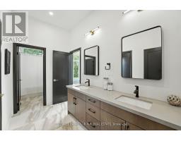 Step into a world of refined luxury and serene country living in this 2024 custom-built masterpiece set on over 3 acres of private land. Inside, you're greeted by soaring 25 vaulted ceilings and warm luxury white oak vinyl plank flooring throughout the open-concept design. The chefs kitchen is a showstopper featuring top-of-the-line Fisher & Paykel appliances, Fusion Retro-Stone countertops, and a custom walk-in pantry with built-in cabinetry and a dedicated prep station. Just off the kitchen, unwind or dine in the stunning 4-season sunroom, complete with a wood-burning fireplace. The southern wing of the main floor features 3 bedrooms, a semi-ensuite 5-pc bathroom, and laundry room. Elevate your experience on the second floor with the catwalk overlooking the grand room. The primary bedroom offers a true retreat with a spa-inspired ensuite bathroom and boasts an oversized walk-in shower with his & her shower heads, a freestanding air jet soaker tub, and a spacious walk-in closet with direct access to both the bedroom and ensuite. Follow the hall to the impressive all-purpose room where you'll find 180 panoramic views of the rolling hills of Blackstock. Brightening the space with LED Pot lights and oversized windows, the custom wet bar with mini fridge make convenience and comfort a priority to align with your lifestyle. Throughout the home you'll find hardwired connections for in-home entertainment or speaker systems for the tech savvy owner. The attached triple-car garage with 12 ceilings and 10 automatic doors offer an abundance of space for vehicles of almost any size, toys, and hobbies, a dog wash station, plus direct access to the main floor and basement. The basement had radiant heated floor, r/i for kitchen & bathrooms. Explore outside and find two additional outbuildings: First, the 40 by 30 detached workshop (half-insulated and propane heated) with 3 automatic garage doors, bathroom and potential office space. (id:50886)