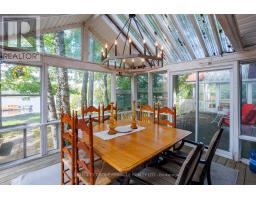 Escape to this secluded 3-bedroom, 1-bath island retreat, located just 1.5 hours from Toronto, with exclusive boat access and the serene beauty of Dewey's Island Nature Preserve. Enjoy island living with the convenience of mainland parking and docking at 146 Coldstream Road, and walk-in access from Lock 35 of the Trent-Severn Waterway, where scenic nature trails await. This cottage features bright windows that frame breathtaking sunsets, two inviting sunrooms (one used as a dining room), and spacious decks perfect for relaxing. Recent upgrades include new flooring, fresh paint, a modern water system, a brand-new kitchen, and the potential for a second bathroom and additional living space in the loft. Outdoors, a large private dock offers direct water access for swimming, fishing, and entertaining. Four outbuildings provide extra storage, and a nearby fishing sanctuary ensures endless waterfront enjoyment. (id:50886)