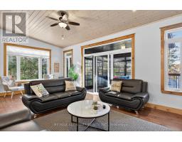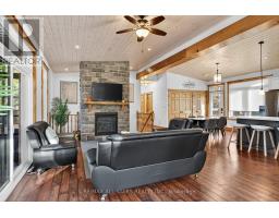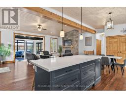 Welcome to your multigenerational lakeside retreat on the Trent-Severn Waterway. This custom-built lakefront home sits on a private lot with 75 ft of direct waterfront on stunning Pigeon Lake, offering unforgettable views and a true four-season lifestyle. From the moment you arrive, you'll feel the comfort of a turn-key, fully furnished home, thoughtfully styled with luxury finishes and ready for immediate enjoyment. Designed for flexibility, this property is ideal for multigenerational families, those seeking income potential, or anyone wanting a peaceful, private waterfront haven. Step inside to an open-concept living space featuring a quartz center-island kitchen, beautiful finishes, and a cozy living room with a fireplace. A bright sunroom and expansive deck allow you to embrace lakeside living from sunrise to sunset. The fully finished walkout basement is perfect for extended family or guests, complete with large windows framing the waterfront, a full bath, a fireplace, and direct access to a lakeside patio. Outdoors, enjoy direct water access, a private dock, and peaceful surroundings. Two outdoor sheds offer the opportunity to create a funky bunkie, studio, or additional storage, and the detached garage adds even more convenience. Whether you're seeking privacy, family living, or a luxurious water's-edge escape, this exceptional property delivers. Just move in, relax, and embrace the waterfront lifestyle you've been dreaming of. (id:50886)