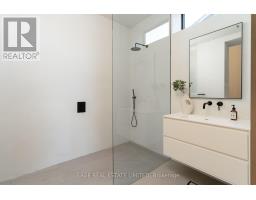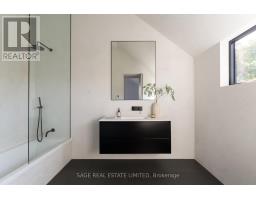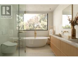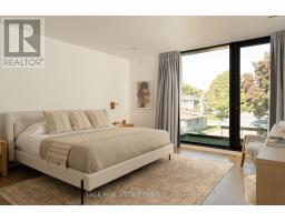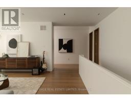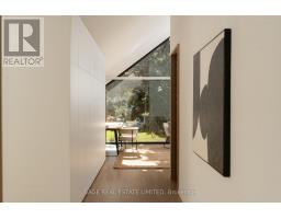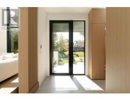 A gentle fusion of Scandinavian and Japanese design, The Emperor sits proudly in Toronto's charming Princess Anne Manor neighbourhood. This detached custom build is an architectural wonder of the west end with smooth finishes, oak floors and panelling, plunging sight lines and cascading sunlight. Hidden doors reveal themselves at your fingertips to unassuming ensuite bathrooms dressed in creams and stone or covert closets with abundant storage - its invisible lines maintain minimalism at the forefront of its demure design. Dramatic floor-to-ceiling windows rise 21 feet high in the main living, wide open to a generously sized dining room and bright kitchen with an exceptional breakfast island and concealed coffee nook. Fluting and custom millwork anchors the front entrance and frames the tv, complimenting the microcement finished gas fireplace. A constellation of soft lights quietly illuminates the home, a spectacle when the sun goes down, while its tobacco coloured facade stretches across the 76 foot wide lot and leads to an inground saltwater pool at the rear. Beneath century old canopy trees, around slow swooping roads, this one-of-a-kind modern build is two minutes from St George's Golf & Country Club & only ten minutes to Pearson Airport. Over 5000 total square feet, your choice of two primary bedrooms and multiple flex spaces on the top floor with the option to convert them to extra bedrooms - executives, creatives, gamers, podcasters, families and fitness enthusiasts will find limitless potential and a whole new meaning to going home at 38 Ravensbourne. (id:50886)