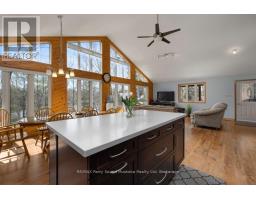 PRIME SOUTH WEST EXPOSURE on Shebeshekong Lake! BREATHTAKING SUNSETS! This 4 season lake house or cottage getaway is nestled on 2/3 of an acre treed lot, Clean clear 103' of sandy base shoreline, Approx 2300 sq ft, Open concept Great Room enhanced with vaulted ceilings, Wall of windows viewing lake, Fantastic kitchen with huge island, Abundance of cabinetry, Quartz counters, , 3 bedrooms, Warm hardwood floors, Finished walkout lower level boasts family room, Den/guest room, 2nd bath, Desirable oversized double garage with workshop/storage area, New ('24) high efficiency forced air propane furnace, Located just 15 minutes from Parry Sound, Shebeshekong Lake is ideal for family fun, Gentle to step in at water's edge, Deep water at end of dock for great swimming, boating, fishing, Protected waters with gorgeous Northern Natural Landscape, Windswept pines, Year round road access, Don't miss this Lakefront Opportunity being offered by the original owner! (id:50886)