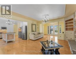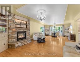 Grace, luxury and space abound in this spacious executive-style home in a beautiful Hawkesbury neighbourhood! You will love the semi-circular drive, the timeless symmetry of this home's facade and the landscaping which brings everything together. Inside, the generous foyer with a recessed ceiling is but an introduction to the abundance within. A living room with a gas fireplace and a dining area create a space that seems to go on forever, thanks to the large window overlooking the back yard. Open the patio doors to the back yard where you will find your very own fountain! This home offers an oversized primary bedroom with full ensuite bathroom and a vanity for you to prepare for the work day or for special evenings! A large walk-in closet adjoins the primary bedroom, and did we mention the patio doors which lead to a cozy deck area just for your morning coffee? Noteworthy is a second main floor bedroom and another four-piece bath with convenient main-floor laundry. An elegant, bright kitchen, with plentiful stylish cabinetry and a classic island complete the main floor. But that's not all. Are you ready? In the lower level, discover an extra-large recreation room with a gas stove, an office, two smaller storage rooms and an extra- large utility room with shelves for all your extra or seasonal items. A detached garage/workshop awaits in the back yard. Flexible possession. (id:50886)