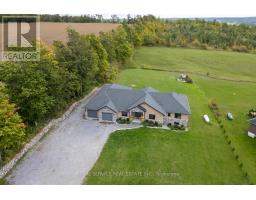 Set on just over two acres in the scenic hills of Cavan, 381 Sharpe Line is a custom-built, multi-generational home offering both privacy and functionality. This spacious residence features a total of six bedrooms, five bathrooms and two full kitchens thoughtfully designed to accommodate extended family living with a separate in-law suite with private entrance and separate deck. The main floor showcases a large, custom-designed kitchen with stainless steel appliances, granite countertops, and an oversized island that overlooks a bright living room with a floor-to-ceiling propane fireplace. Expansive windows invite natural light and reveal breathtaking views, with walkouts to a private deck. A separate dining room overlooks the front yard, while three bedrooms and three bathrooms provide ample space, including a convenient laundry area with garage access and a pass-through to the in-law suite.The lower level offers a versatile layout with two additional bedrooms, a three-piece bathroom, and an expansive family room complete with a bar area. Additional highlights include a custom wine cellar, exercise room, office or den, generous storage, and both front and back staircases. The in-law suite is fully self-contained and includes a custom kitchen, dining area, comfortable living room with deck access, large bedroom with double closets, and a four-piece bathroom with laundry. A two-car garage provides direct access to the home and features a separate man door. The large lot offers potential for a workshop at the rear. Located just 10 minutes from Peterborough, 5 minutes to Highway 115 and 20 minutes to Highway 407, this home also enjoys nearby access to Cavan Creek Park & Trails and local conveniences. This beautiful custom home is well-positioned for convenience while offering privacy and exceptional outdoor space. (id:50886)