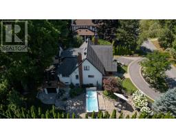 Long admired in the Village, this classic beauty has been lovingly maintained and improved by the current owners over the last 15 years. A lush landscape plan has created a private outdoor retreat enjoyed over three seasons, featuring a swim spa. As a highlight, the interior is a beautiful blend of old-world charm with all the conveniences. Leaded windows maintain the classic beauty, along with arched hallways, quarter-sawn oak floors, and a wood-burning fireplace, while upgraded baths and a newer kitchen reflect the current style. The upscale galley kitchen boasts quartz counters, a glass backsplash, and stainless steel appliances, and flows into a welcoming seasonal screen porch that is enjoyed throughout the warmer months. The family room is dramatic with a wood burning fireplace and accented with a large palladium window that embraces the landscape beyond. The first level offers a guest bedroom or den, conveniently located next to a 4-piece family bath with upgraded floor tiles. The second level offers a primary suite with a modern and luxurious 5-piece ensuite. Two other bedrooms on this level complete the family space. The lower level has been redesigned to create a home spa, featuring heated floors and a 3-piece bath with steam shower. This steam shower of often used in conjunction with the swim spa for a relaxing interlude. There is a lower-level garage that is utilized for storage and offers an easy walk out on this level. The newer detached double-car garage boasts a loft space and high ceilings to accommodate car lifts, for smaller, sporty vehicles if desired. All in all, this home offers the convenience of being close to any of the four neighbourhood schools, parks, trails, tennis courts, or the shops of Beechwood Village. It is full of charm and personality and nothing to do for you but enjoy for years to come inside and out! Heritage rating 70/100. (id:50886)
