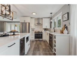 Set Back on a beautiful spot of town, with school bus pickup just steps from the driveway, this nicely updated 3-bedroom, 2-bathroom backsplit offers the perfect blend of modern comfort, thoughtful upgrades, and peaceful country living. Resting on a nearly 1-acre (0.96 acre)landscaped lot, this property showcases a massive circular driveway, mature trees, and an incredible outdoor space featuring an above-ground pool, hot tub, and patio area ideal for entertaining or relaxing year-round. The main floor boasts a bright, open-concept layout with new modern vinyl plank flooring throughout, a fully updated kitchen complete with gas stove, custom island with built-in minifridge, stainless steel appliances, and walkouts to both the backyard oasis and side deck with a gas BBQ hookup. Upstairs, you'll find three freshly painted bedrooms, each with closets, and an updated 3-piecebathroom featuring a new vanity. The lower level offers a cozy yet functional rec room with a wood-burning fireplace, large windows providing ample natural light, continued vinyl plank flooring, and direct access to the garage, laundry room and a 3-piece bathroom. The garage is a standout feature-heated with its own furnace, offering direct access to both the backyard and basement. Whether you need a workshop, extra storage, or are considering finishing the space further, this area offers amazing flexibility and value. Located just a short drive to Peterborough, Lindsay, and local amenities and major highways including 115,407,401. (id:50886)