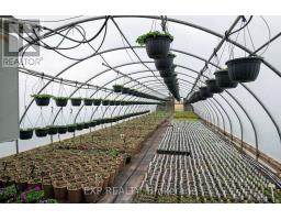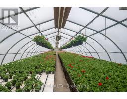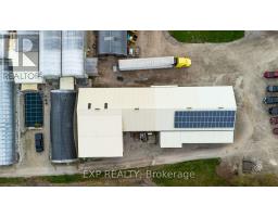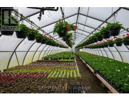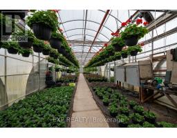Just shy of 10 acres, this remarkable property features a 7,700 sq. ft. commercial-grade shop, a spacious five-bedroom home, and nearly 84,000 sq. ft. of greenhouse space is located just outside London, Ontario in Thames Centre. The 48 greenhouses, each accessible via grade-level doors, are supported by two deep wells and a manual irrigation system, enabling efficient, year-round production. The insulated shop is equipped with multiple grade-level doors, a walk-in cooler, and office space. The shop includes five 12x12 doors, one 12x10 door, and one 8x8 door, as well as an additional 12x12 door near the greenhouses, offering flexible access for equipment and product staging. The residence offers five bedrooms, two bathrooms, an open-concept main floor, and an attached two-car garage perfect for family living or on-site staff housing. Owned solar panels under a 20-year Hydro One contract (with 10 years remaining) provide additional annual income. The rear of the property includes 4 acres of workable farmland currently planted with corn, offering room for future expansion or diversified agri-use. With excellent road frontage, a generous parking lot ideal for retail development, and quick access to Veterans Memorial Parkway and London city limits. The current business can be sold separately which wholesales a wide range of plants from petunias and perennials to hanging baskets and vegetable starters serving businesses, weddings, homes, and gardens across the region. (id:50886)