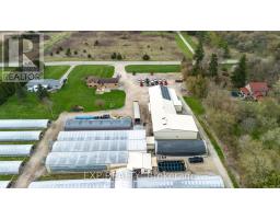 Just shy of 10 acres, this remarkable property features a 7,700 sq. ft. commercial-grade shop, a spacious five-bedroom home, and nearly 84,000 sq. ft. of greenhouse space is located just outside London, Ontario in Thames Centre. The 48 greenhouses, each accessible via grade-level doors, are supported by two deep wells and a manual irrigation system, enabling efficient, year-round production. The insulated shop is equipped with multiple grade-level doors, a walk-in cooler, and office space. The shop includes five 12x12 doors, one 12x10 door, and one 8x8 door, as well as an additional 12x12 door near the greenhouses, offering flexible access for equipment and product staging. The residence offers five bedrooms, two bathrooms, an open-concept main floor, and an attached two-car garage perfect for family living or on-site staff housing. Owned solar panels under a 20-year Hydro One contract (with 10 years remaining) provide additional annual income. The rear of the property includes 4 acres of workable farmland currently planted with corn, offering room for future expansion or diversified agri-use. With excellent road frontage, a generous parking lot ideal for retail development, and quick access to Veterans Memorial Parkway and London city limits. The current business can be sold separately which wholesales a wide range of plants from petunias and perennials to hanging baskets and vegetable starters serving businesses, weddings, homes, and gardens across the region. (id:50886)