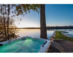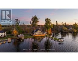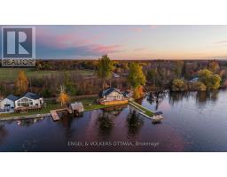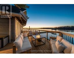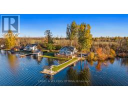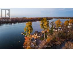 The Pier House - designer waterfront living on the Rideau River. This 4-bedroom retreat offers nearly 200 ft of pristine shoreline along the Long Reach, 30km of lock-free boating, with sunset views across the water toward Baxter Conservation Area. Elevated by luxury finishes and extensive updates, the home features a striking great room with floor-to-ceiling windows, custom built-ins, and a modern fireplace. The kitchen blends walnut butcherblock counters and a quartz island for a warm, modern aesthetic. A major renovation in 2022 introduced engineered hardwood throughout, new trim, doors, and a fully redesigned primary suite with spa-inspired ensuite and walk-in closet. Roof(2024), decking(2025), and front door(2024) all recently replaced; new hot tub (2025) with warranty. Updated electrical and advanced RO + UV water purification systems ensure turnkey peace of mind. The home's expansive wrap-around deck provides the ultimate outdoor living experience, thoughtfully designed with multiple zones for relaxing and entertaining - from casual lounging and dining areas to a dedicated BBQ space. A built-in wood bar with high stools adds a resort-like touch, perfect for enjoying evening drinks overlooking the water. Easy boating with a private boathouse, and in winter, enjoy skating, cross-country skiing, and snowmobiling right from your shoreline. Conveniently located with quick access to Highway 416 - just 30 minutes to downtown Ottawa, 15 minutes to Manotick, and 10 minutes to Kemptville. (id:50886)