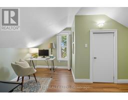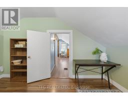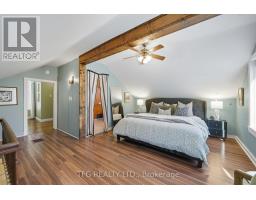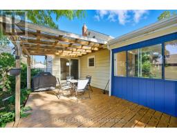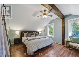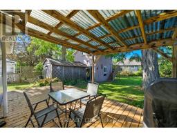 Quintessential small town living in the heart of downtown Cobourg with private backyard oasis and bonus office/studio space above the detached garage. Built in 1856, this home offers a tasteful blend of modern finishes and century charm. Main floor offers convenient single-level living with large welcoming foyer with open wood staircase, spacious front living room with large windows and adjoining bright and open dining room. Modern updated kitchen with granite countertops, stainless appliances, breakfast bar and new backsplash and range hood. Generous bedroom with walkout to large covered deck. Main floor completed with 3-piece bath with clawfoot tub, laundry room, and 3-season sunroom overlooking the private backyard retreat. Upstairs boasts a large open primary bedroom with 3-piece ensuite as well as a third bedroom/office/dressing room with large walk-in closet with built-in shelves. The large detached garage and workshop is a hobbyist's dream with a separate panel and bonus ~200sf upstairs studio/office/guest room with new heat pump and upgraded insulation. Sprawling backyard (almost entirely fenced) with soaring mature trees, perennial gardens and lots of privacy. The large covered porch with Eastern exposure offers an idyllic space to start your day with a morning coffee or unwind after a day's work. Located just steps from shops, restaurants, library, Cobourg Beach & Marina, Lake Ontario, dog park and schools. This home has something for everyone and is sure to please. Recent updates include: new heat pump & upgraded insulation for office/studio, new electrical panel, range hood, backsplash, PVC waste water pipe, main floor & back deck paint (id:50886)