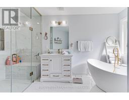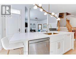 Welcome to Thornhill Woods! This beautiful 3-bedroom, 3.5-bath home blends modern upgrades with timeless comfort in one of Vaughan's most sought-after family communities. At the heart of the home is a brand-new custom kitchen (2024) designed for both everyday living and entertaining. Featuring sleek quartz counters, a striking oversized island with seating, and elegant gold hardware, this space is as functional as it is stylish. Thoughtful storage abounds with deep drawers, organized cabinetry, and built-in solutions. The kitchen is fully equipped with high-end appliances including a built-in wifi Café oven, double wall ovens, stainless steel French-door fridge, gas cooktop with pot filler, and integrated dishwasher. Designer lighting, under-cabinet illumination, and large windows with California shutters create a bright, welcoming atmosphere.The renovated primary ensuite bathroom (2024) is a true retreat. Indulge in a freestanding soaker tub, spa-inspired glass shower with rainfall and handheld fixtures, and floor-to-ceiling marble-look tile. A vanity with quartz counters and abundant drawer storage pairs perfectly with modern lighting and gold finishes, creating a space that feels both luxurious and practical.Additional highlights include 9ft ceilings, a cozy gas fireplace in the living area, new hardwood on the first floor and stairs (2024), a finished basement with full bath and and versatile rec space, and outdoor upgrades such as an interlock patio, sprinkler system, and four-car parking with electric barn-style garage door.Sole-owner pride of ownership, proximity to top schools, community centres, conservation areas, and major highways, this is a must-see property in a must-see neighbourhood. (id:50886)