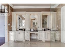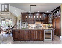 This stunning luxury bungalow is located on a peaceful street in the prestigious Vellore Village Community, offering over 7,000 sq. ft. of beautifully crafted living space. Situated on a spacious 0.5-acre lot, this home features 4+1 bedrooms, 4+2 bathrooms, and an office, all designed with elegance and comfort in mind.The main floor boasts 10-14 ft ceilings and an open-concept layout, with high-end finishes throughout, including maple hardwood floors, porcelain tiles, and crown molding. The formal dining room features coffered and acoustic ceilings, perfect for special gatherings.The European-inspired kitchen is equipped with built-in appliances, marble countertops, a stylish backsplash, and a butler's pantry. The primary bedroom offers a luxurious ensuite with a glass shower, double sinks, and a walk-in closet.The professionally finished lower level includes an additional bedroom, office, kitchen, bathroom, recreation area, and a soundproof theater for movie nights.Step outside to your private oasis, complete with an in-ground saltwater pool, waterfall, hot tub, and a beautifully landscaped backyard. Enjoy outdoor dining, relax by the pool, or unwind in the 20-person gazebo. Additional features include a built-in BBQ, in-ground sprinkler system, and exterior lighting.This home also includes a cold cellar, stone wall accents, epoxy flooring in the garage, and a car lift, with spray foam insulation throughout for energy efficiency. **EXTRAS** Conveniently located close to shopping plazas, Vaughan Mills Mall, Highway 400, Cortellucci Vaughan Hospital, and Canadas Wonderland. (id:50886)