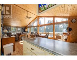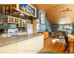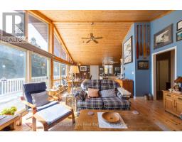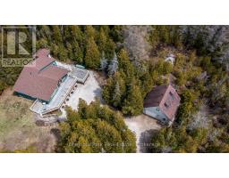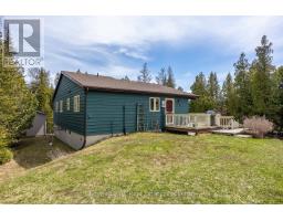 Nestled among the trees on a peaceful 2.1-acre lot, this inviting raised bungalow offers the perfect blend of comfort and nature. The open-concept design is ideal for entertaining, featuring warm v-match pine walls and a spacious living room with a cozy propane fireplace. The functional kitchen provides ample counter space, while a wall of windows floods the space with natural light and frames stunning views of the western sky and starlit nights. The home includes two generous-sized bedrooms, with the primary bedroom offering patio door access to a side deck perfect for enjoying your morning coffee while watching the abundance of birds in the nearby trees. A third bedroom has been thoughtfully converted into a laundry room with a dedicated office space. The 3-piece bathroom features a low-threshold walk-in shower for added convenience. A detached garage provides both parking and a dedicated workshop area, with a finished upper level for guest overflow complete with a compostable toilet. Lake access is just a short walk down the road, offering the perfect spot to launch a kayak or enjoy a refreshing summer swim. Relax to the soothing sound of waves rolling in from Lake Huron. Located just 15 minutes from Tobermory and close to Singing Sands Beach, Bruce Peninsula National Park, and other local attractions, this property is a peaceful retreat with easy access to everything the area has to offer. Don't miss this rare opportunity to own a private escape in the heart of nature! (id:50886)