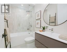 Not just stylish, but smart: this cleverly designed Leslieville renovation breaks the rules with edge and attitude. This 4+1 bedroom + office, 5-bath stunner delivers style for days, a basement that stretches on forever, and the rare luxury of 2-car parking, with a electric roll up fence and grass block pavers that create a green parking pad that's beautiful, functional and eco-friendly (genius!). Behind its fabulous Victorian façade, a sleek modern addition ensures period curb appeal, while glass railings set the tone for contemporary chic. Step inside to main floor magic: custom entry millwork, wide-plank white oak floors, jaw-dropping modern windows, and a perfectly practical powder room. The kitchen is pure envy-two-tone Muti flat-panel cabinets, a show-stopper island with seating for the whole crew, integrated appliances, a 6-burner gas cooktop, and stone counters that beg for entertaining. The living space is equally impressive, with floor-to-ceiling windows and room for your biggest sectional (yes, bring the big one). Light pours through soaring ceilings up and down, complemented by iconic Muti built-ins and white oak floors throughout. The primary suite is a spa zone dream, boasting custom closets, a fluted double vanity, a stand-alone tub, and a seamless walk-in shower. Next to the primary is a sun-filled dedicated office space away from the rest of the home with a large deck! Every bedroom is a treat, with closets galore, a guest suite complete with ensuite, and a main bath so organic you'll want to drop straight into downward dog. Bonus moments abound: second-floor laundry (praise be!), and a lower level that checks every box-high ceilings, a massive rec room, huge windows, a spa bath, and a spacious bedroom that could double as a home gym, with ceiling height to spare for your treadmill. Live your best Leslieville life in a home that blends Victorian charm with modern brilliance, offering space, light, convenience and style at every turn. (id:50886)